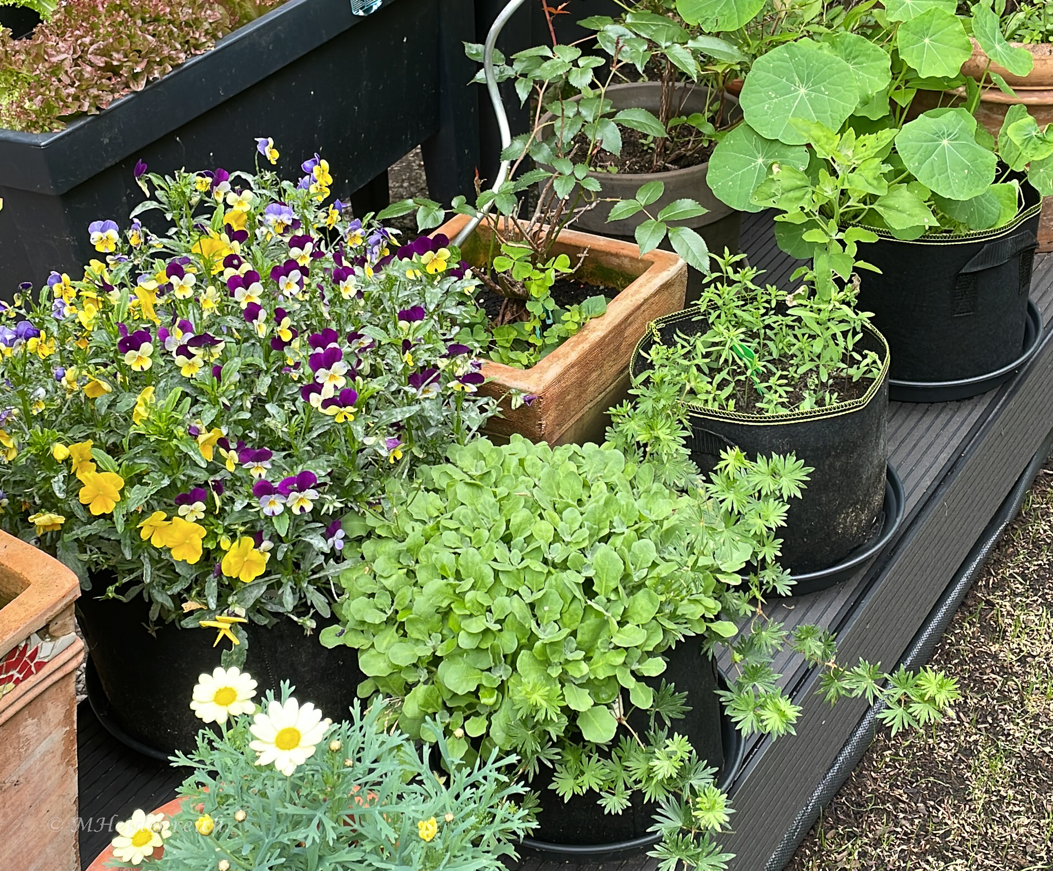 Wer einen Balkon hat, kann natürlich wesentlich größere Mengen an Futterpflanzen anbauen. Dabei sind auch einige der üblichen „Balkonkästen-Pflanzen“ durchaus verwendbar: Blüten und Blätter von Hornveilchen, Stiefmütterchen, Glockenblumen, Gartenkresse oder die Bellis-Arten gehören zu den verträglichen Futterpflanzen. Die Kapuzinerkresse, die allerdings etwas seltener auf dem Speiseplan stehen sollte, gedeiht auch wunderbar und schmückend in Balkonkästen, Töpfen oder Schalen. Selbst eine Malvenpflanze im Kübel kann äußerst ertragreich sein. Gerade für den Balkon bietet sich eine für Bartagamen geeignete Samenmischung an, da somit eine große Auswahl verschiedenster Futterpflanzen bei geringem Platzbedarf zur Verfügung gestellt werden kann.