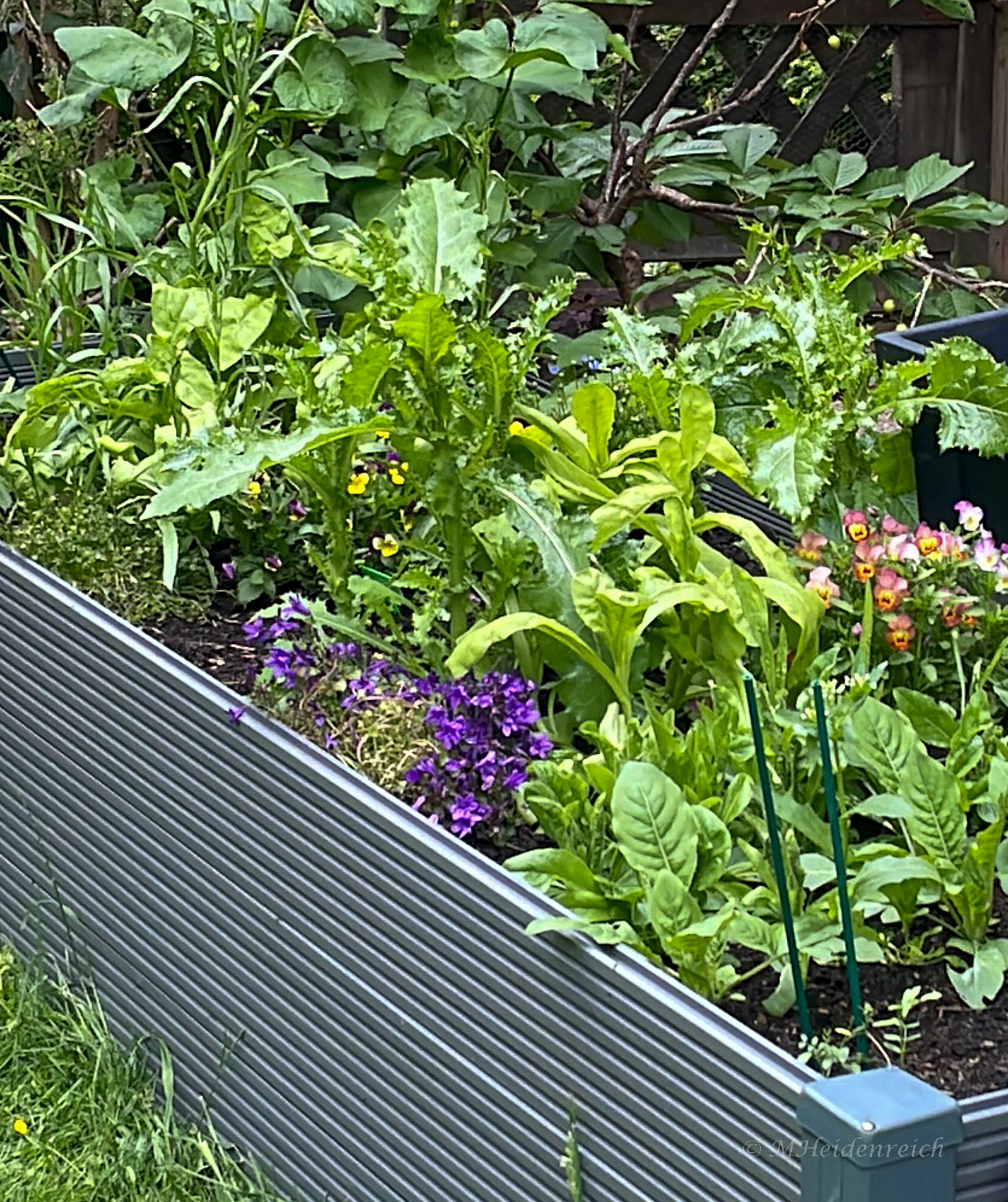 Meine Garten-Lösung ist eine Mischung aus Wildwuchs, „Bearded Dragon Only“-Hochbeet, gemischten Beeten und diversen bepflanzten Schalen, Kübel oder Töpfe. Neben der gepflanzten Himbeere, die in einer Gartenecke weitestgehend unkontrolliert wachsen darf, finden sich entlang des Gartenzauns, im Rasen und in kleinen verwilderten Oasen verschiedene sich selbst angesiedelte Wildkräuter: Löwenzahn, Brennnessel, Hohlzahn, Walderdbeere, Gänseblümchen, Ziest, Ehrenpreis, Stinkender Storchenschnabel, Wiesen-Schaumkraut, Veilchen und Weidenröschen bilden hier auch ohne Aufwand eine Grundlage für das tägliche Füttern.