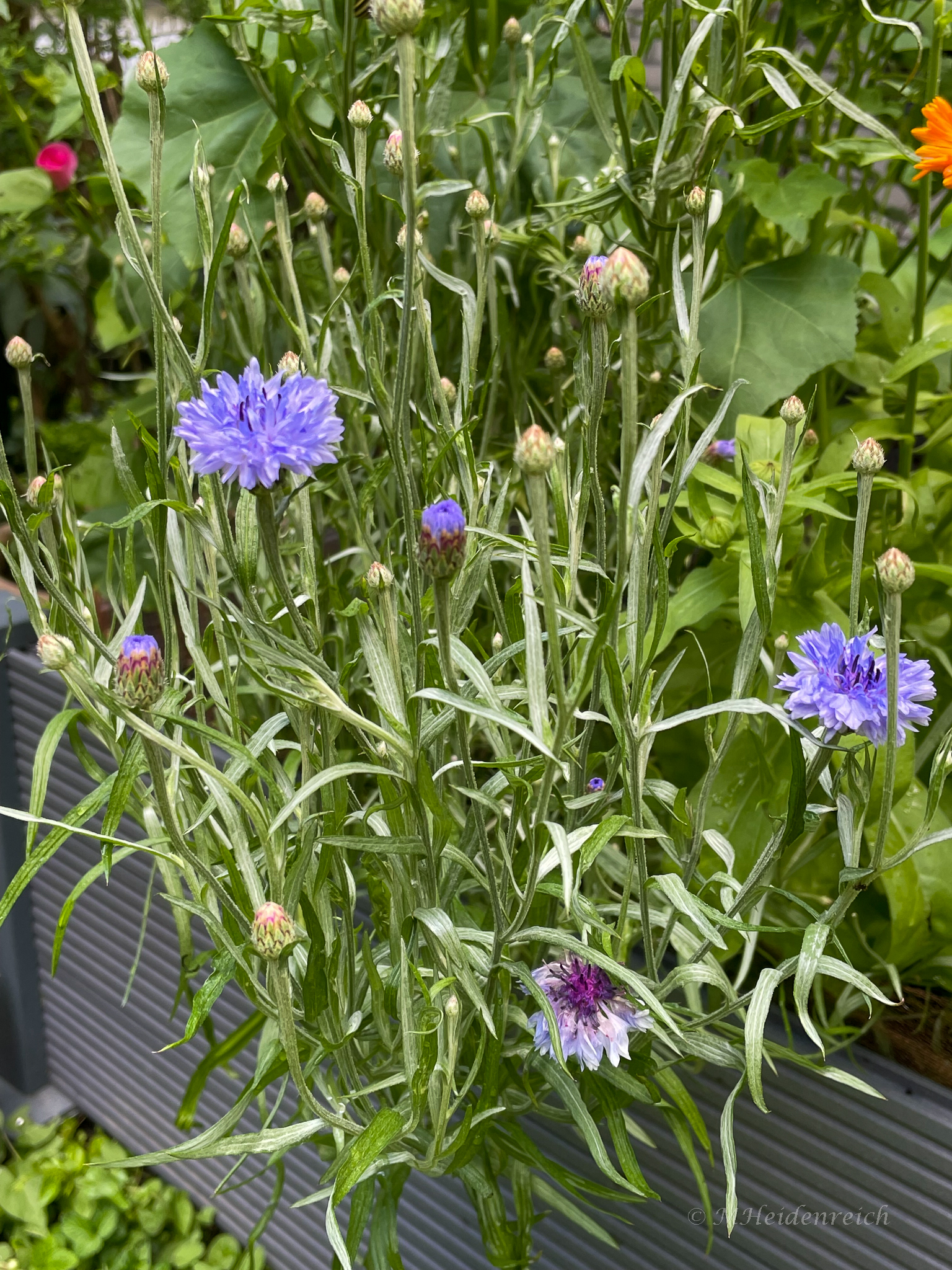 Kornblumen, die sich aufgrund Platzmangels einen Weg zu Seite gesucht haben.